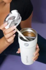 Lift the straw to sip your cold drink or the spout to swig your hot drink.